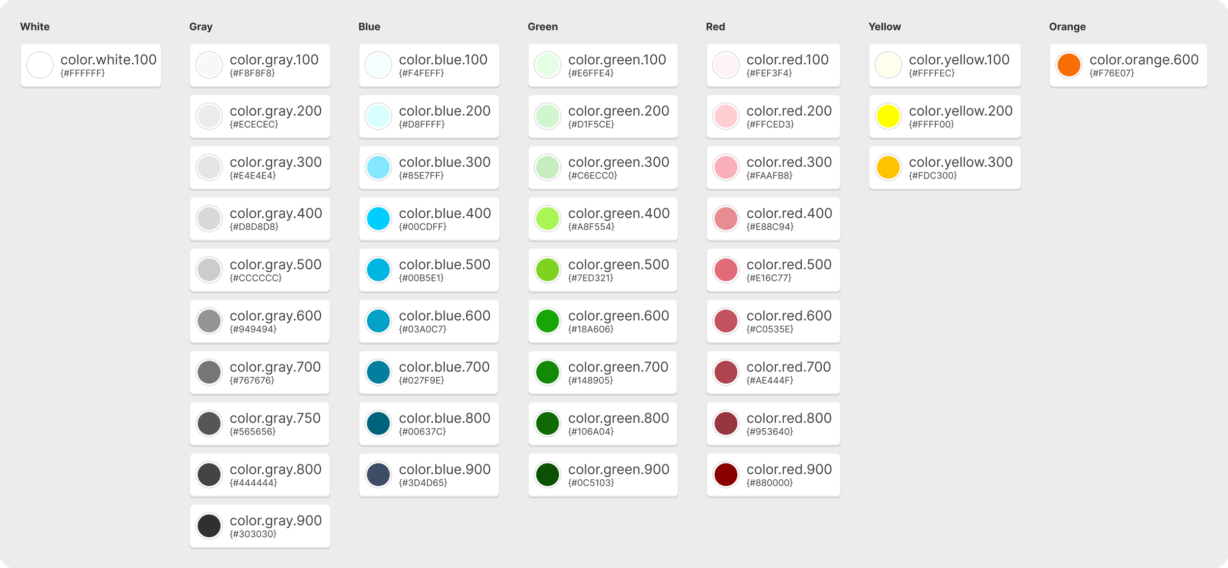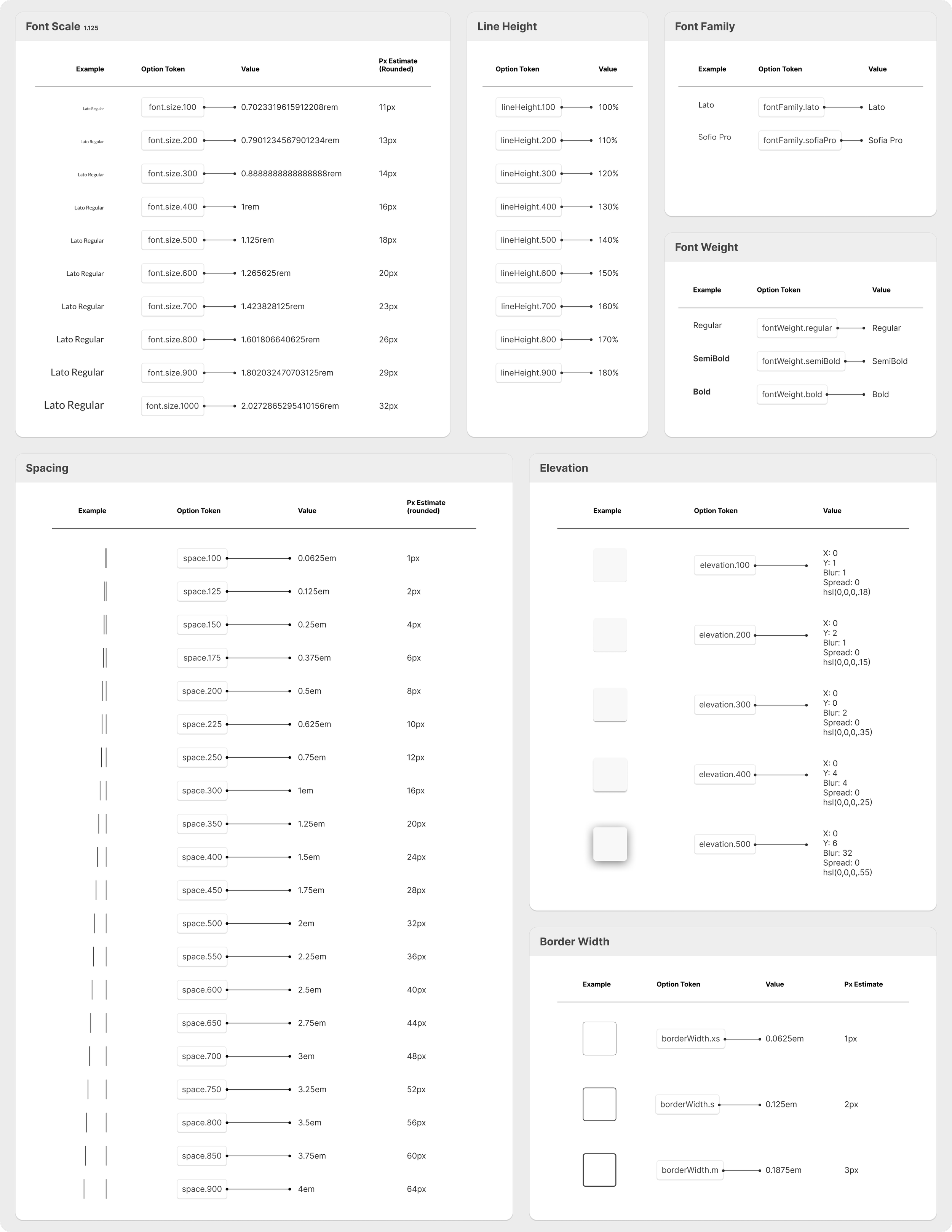 I began the tokenization process by defining our option tokens. These represented the hard-coded values of the most common atomic design properties in our design system.