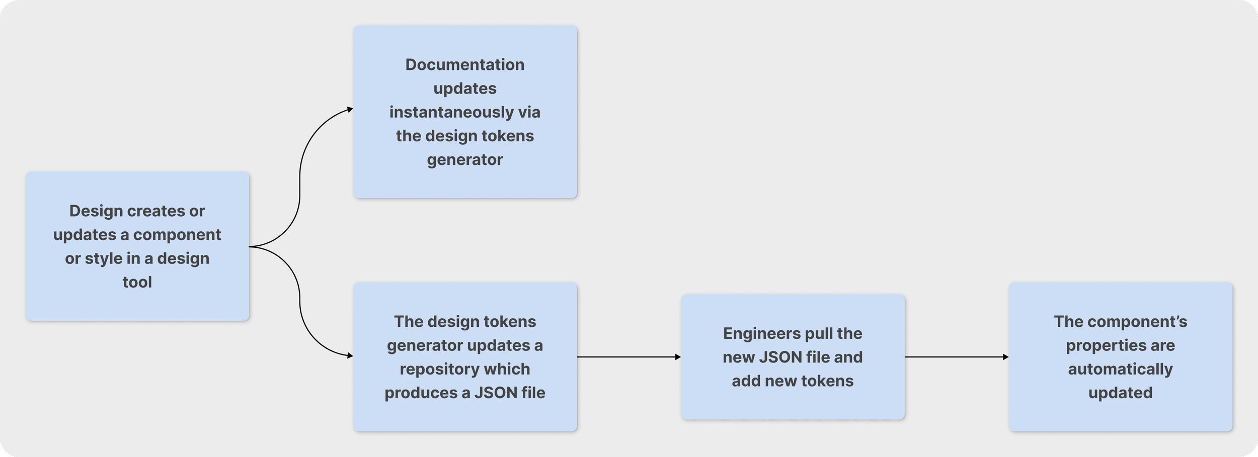 Our team’s documentation also looked entirely different. Changes were made through the token generator and were reflected in Figma instantaneously. Keeping documentation up-to-date was no longer a behemoth of a task, giving us the flexibility to expend valuable resources elsewhere.