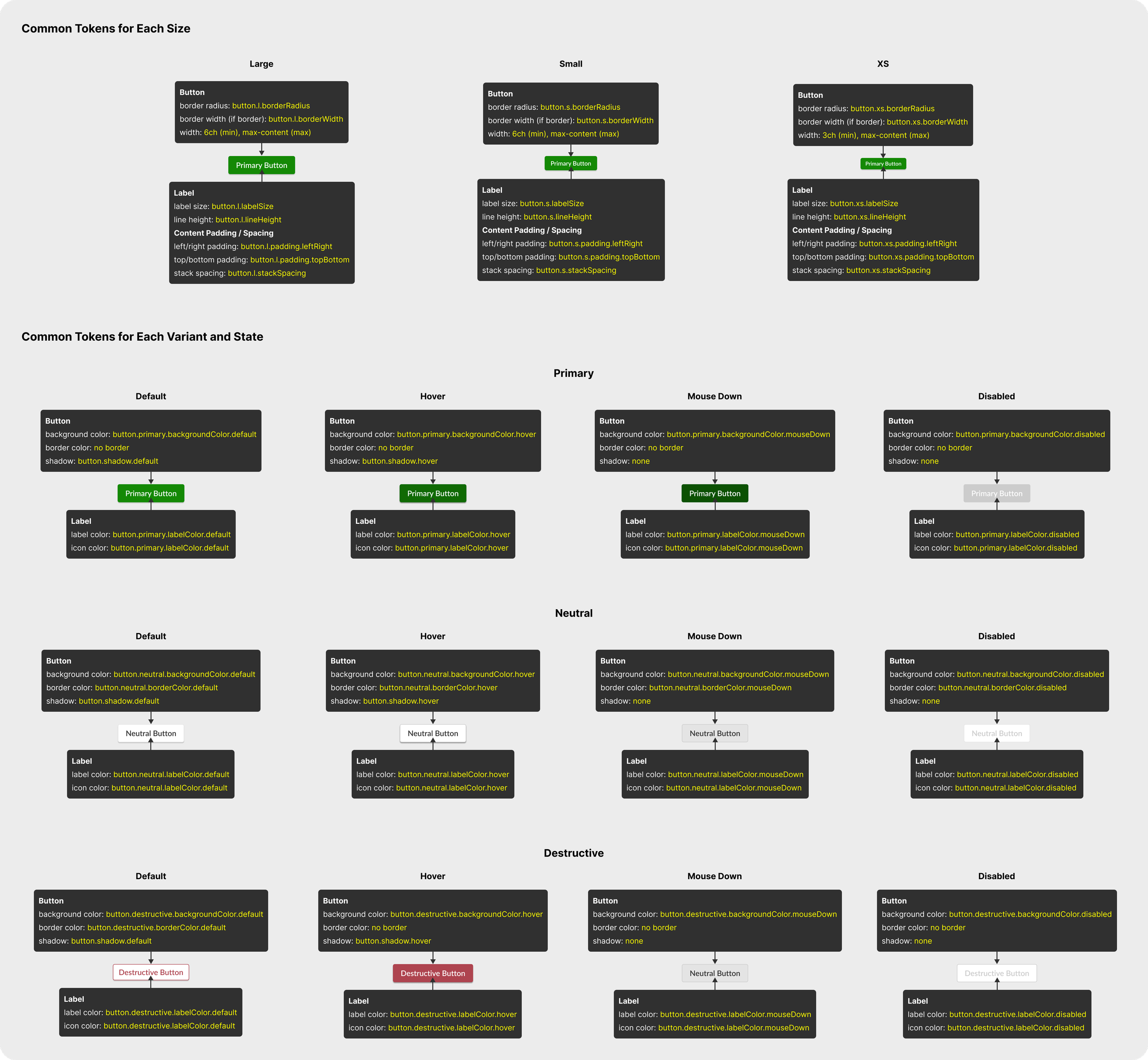 Each token represented a design decision. When trying to consolidate all of our option tokens, I prioritized flexibility and predictability. A set of purposeful and focused option tokens that fit our product’s needs was more powerful than having every token for every possible scenario.